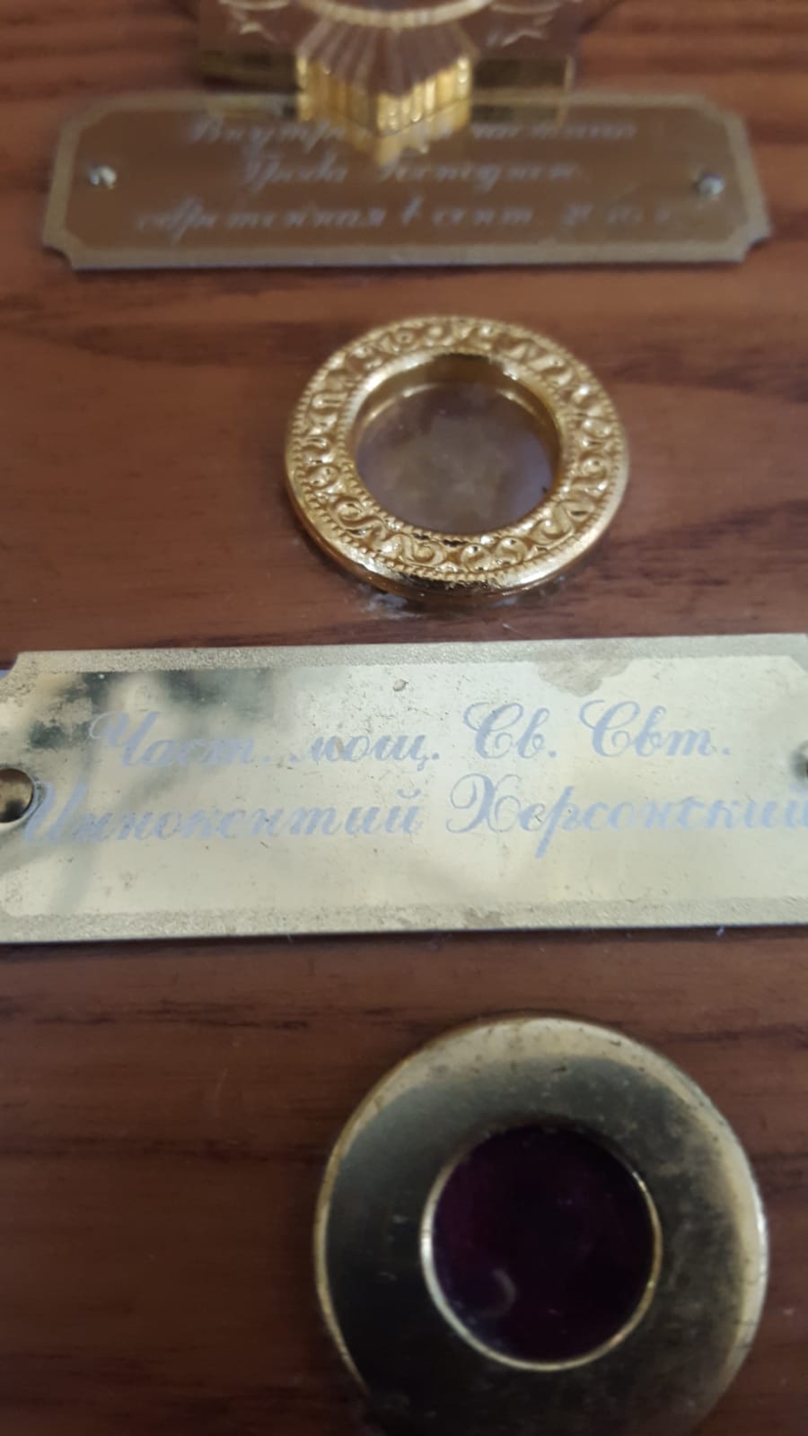 6. Částice relikvie světitele Innokentije (+1857), arcibiskupa Chersonského a Tavrického.