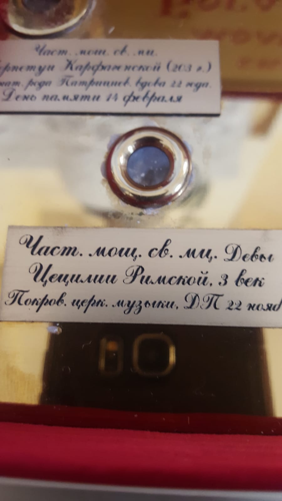7. Částice relikvie mučednice a panny Cecilie Římské (III stol.).