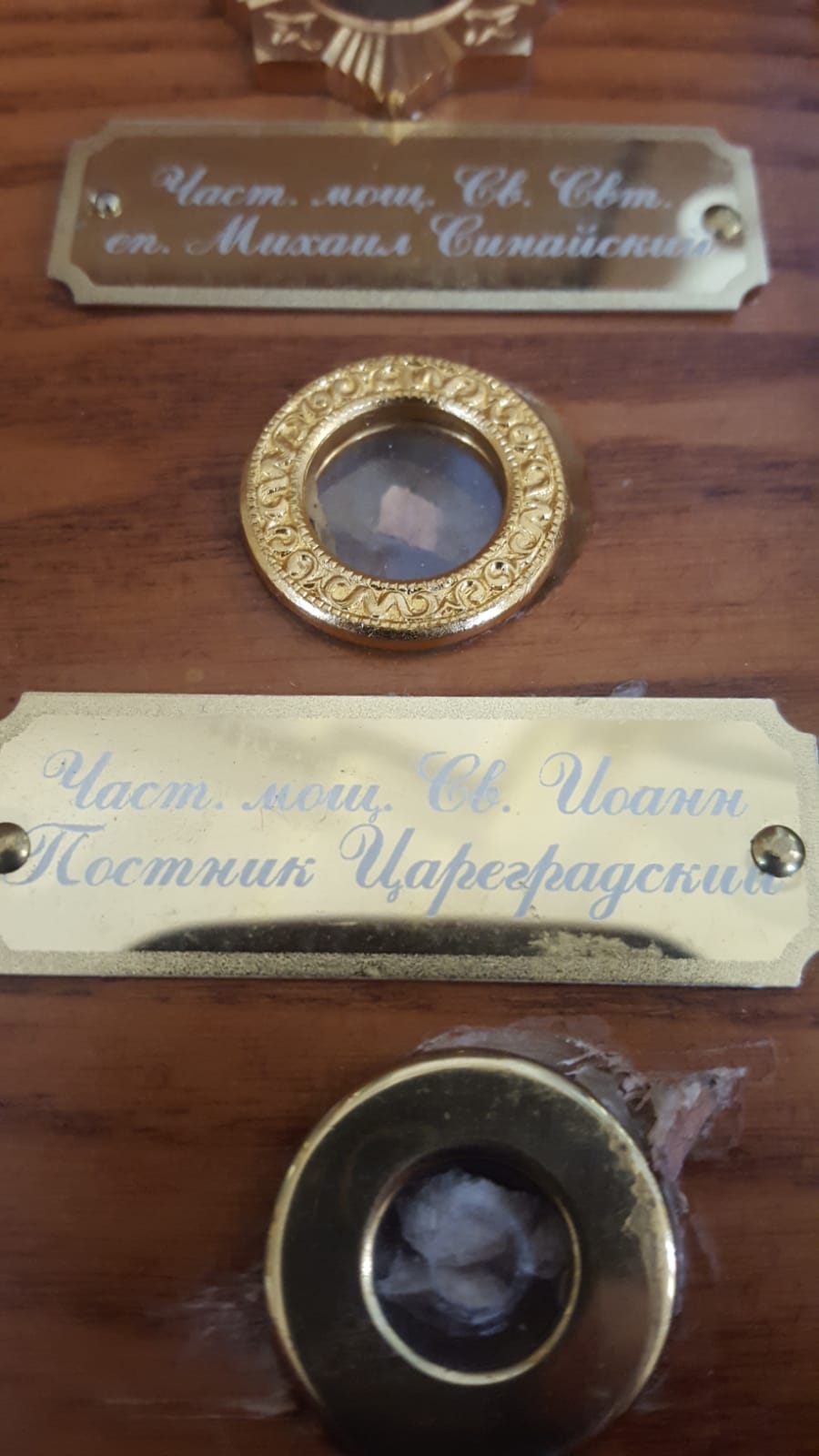 8. Částice relikvie světitele Jana Postníka (+595), patriarchy Konstantinopolského (Cařihradského).